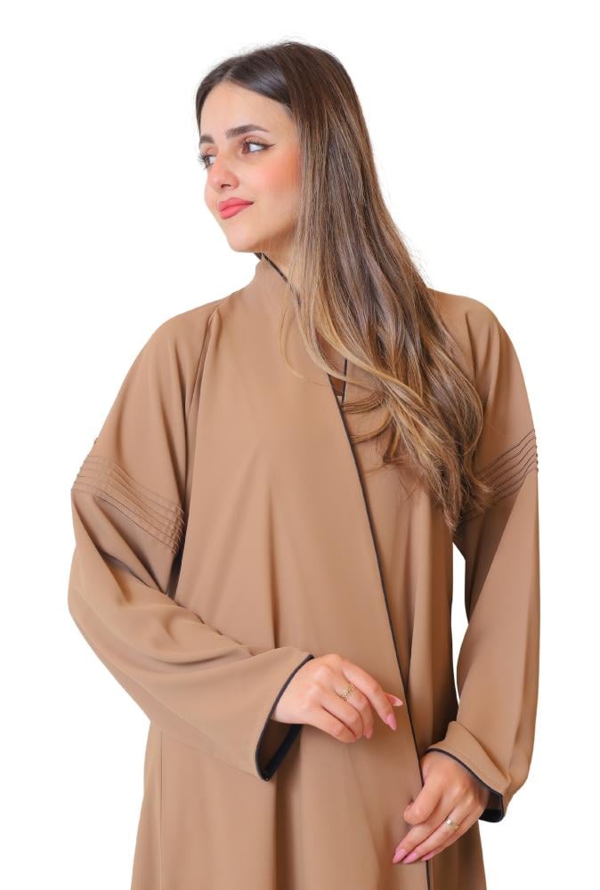 - عباية لف بكسرات في وسط اليد محددة من الامام بلون اسود عباية انيقة بقماشها الكريب الطايح ربع كلوش ساحرة في جمالها