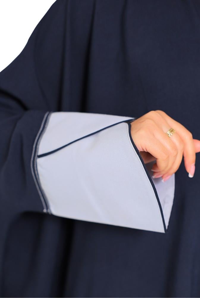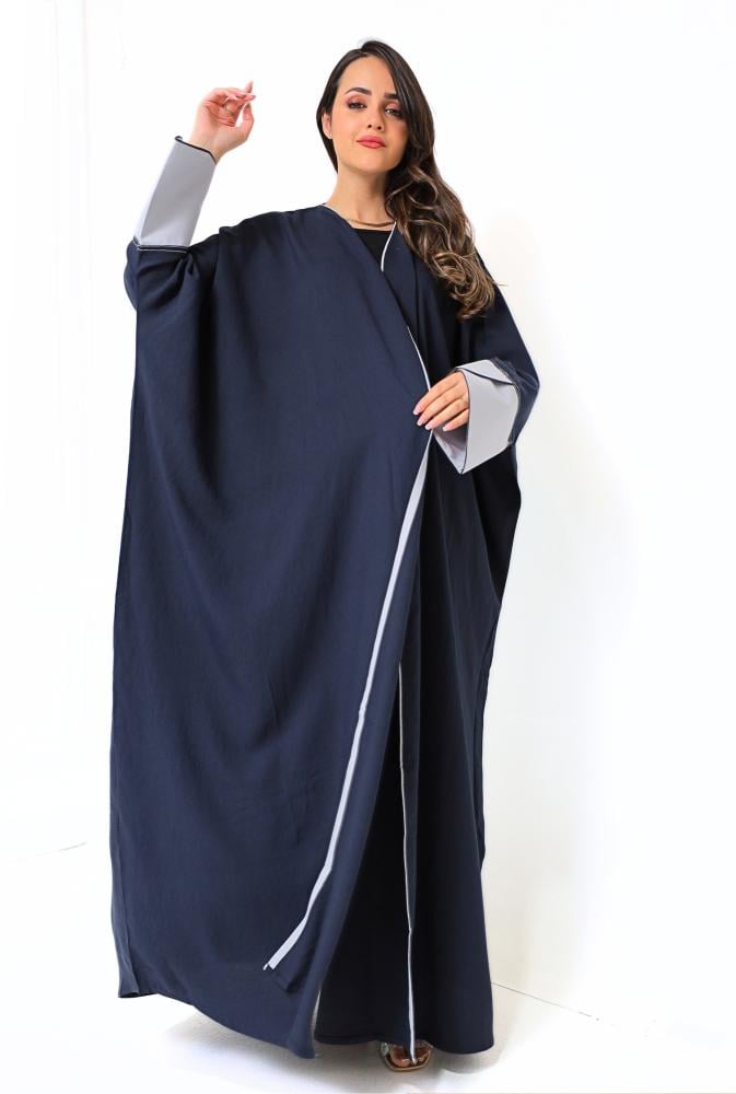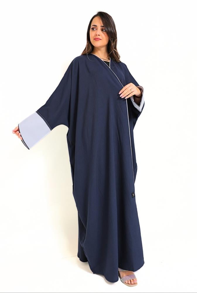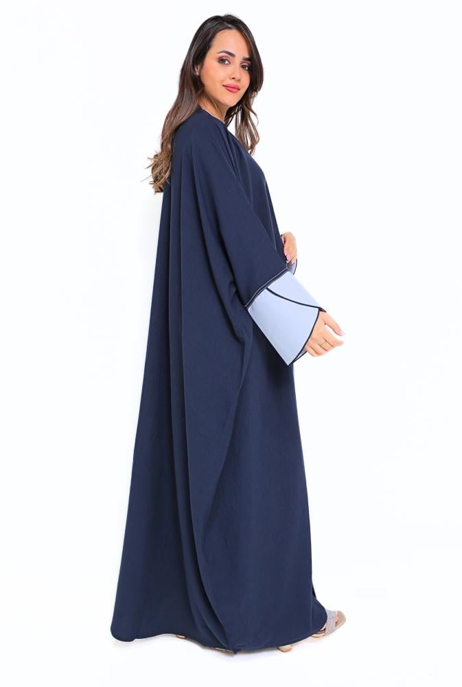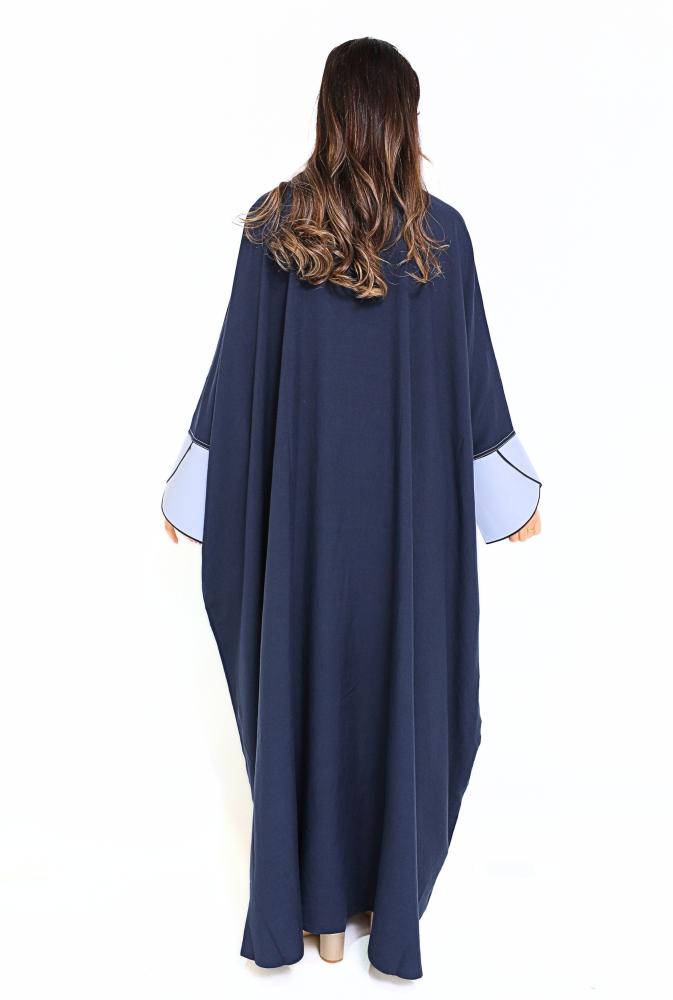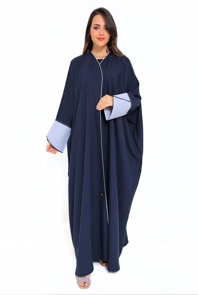 عباية لف بشت كم بشكل مثلث محددة من الامام بلون سماوي