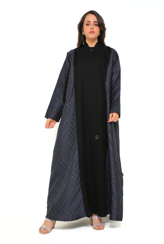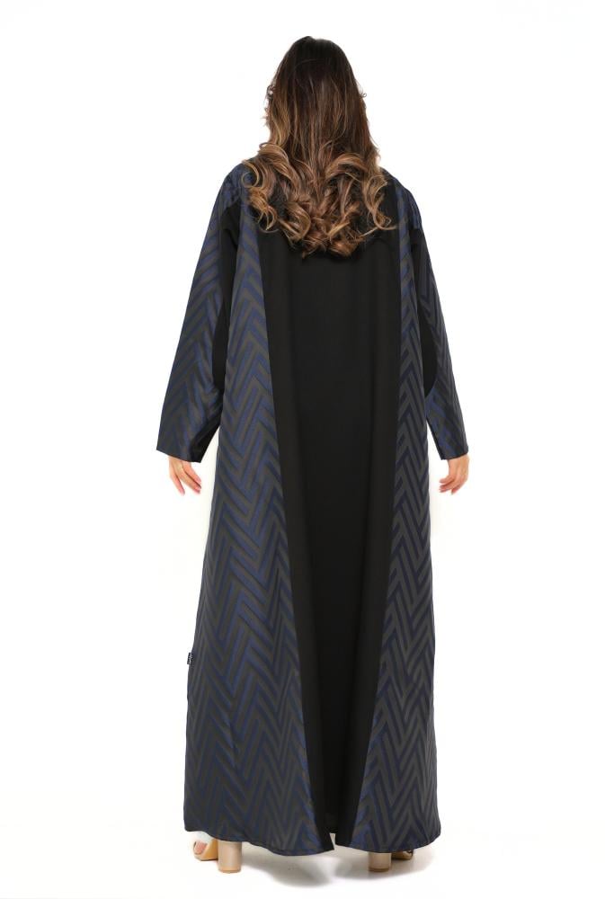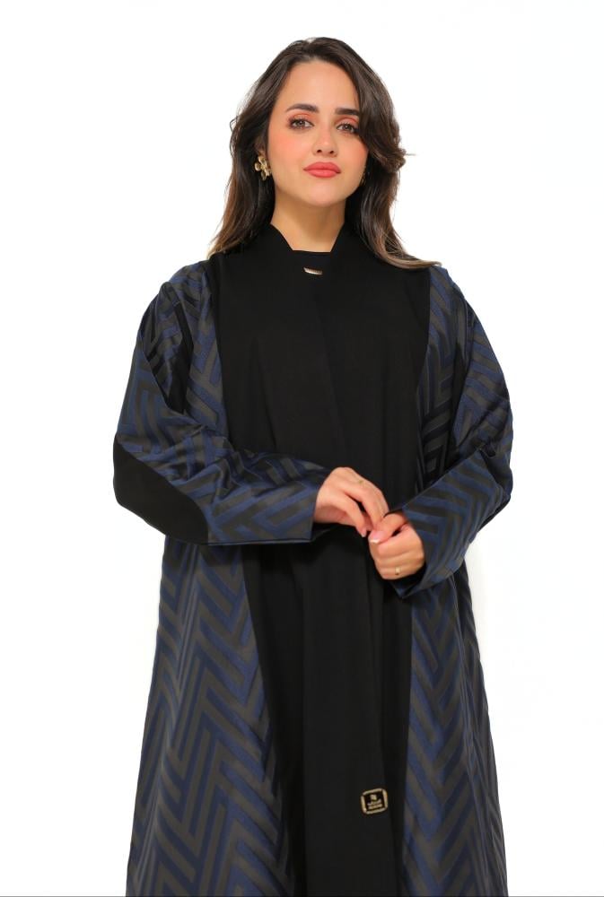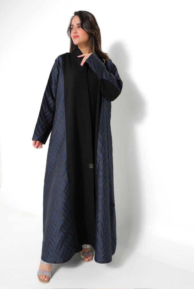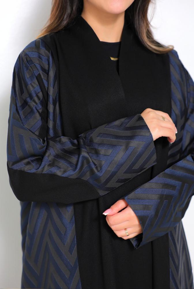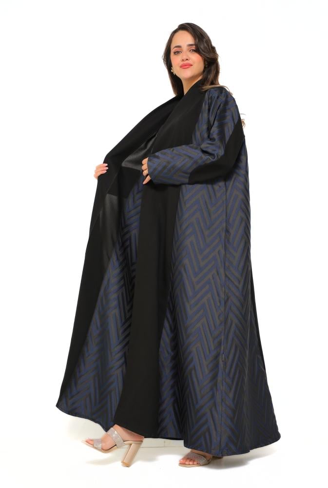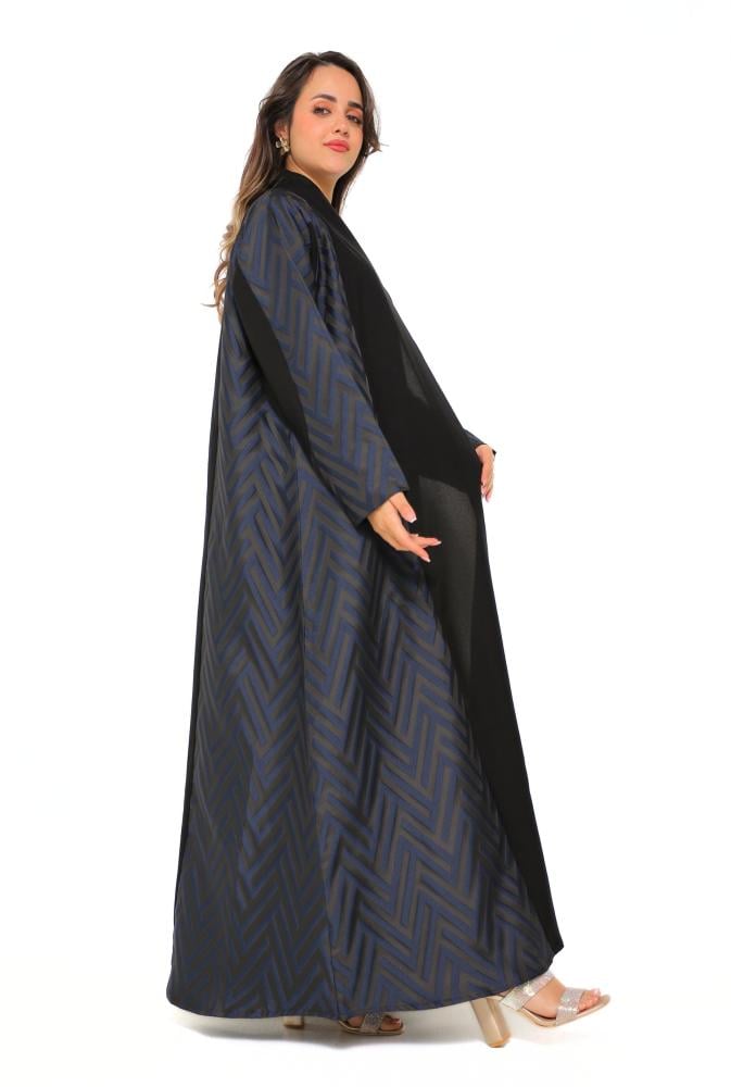 عباية لف قماش برسمة هندسي من الجوانب لون كحلي