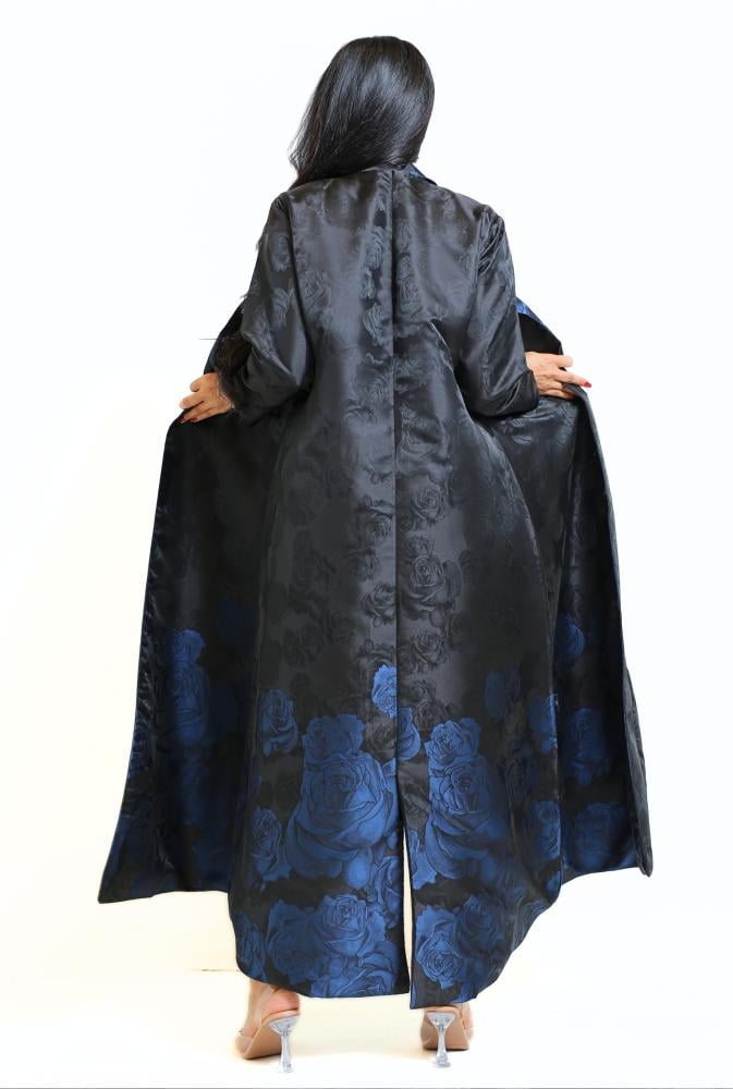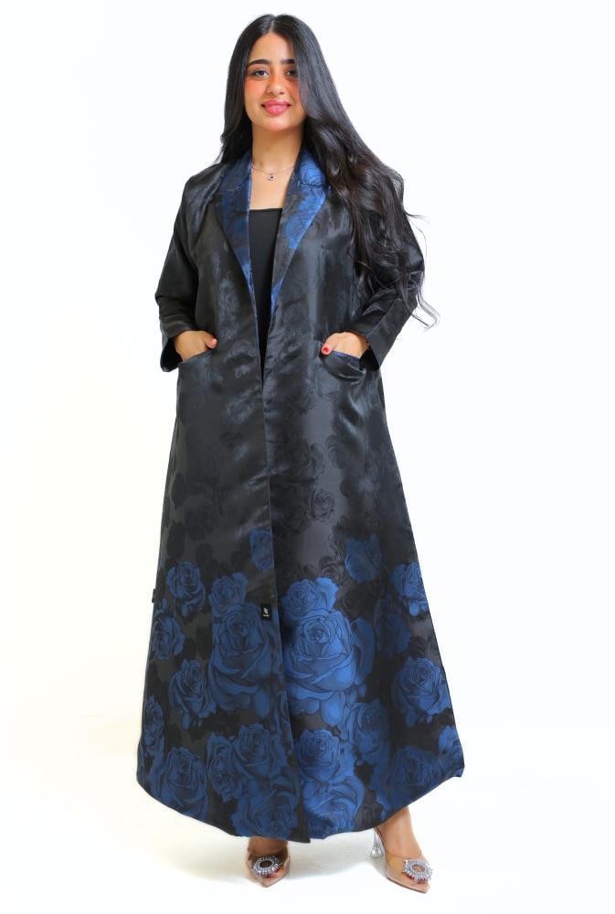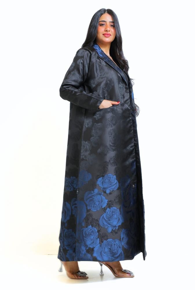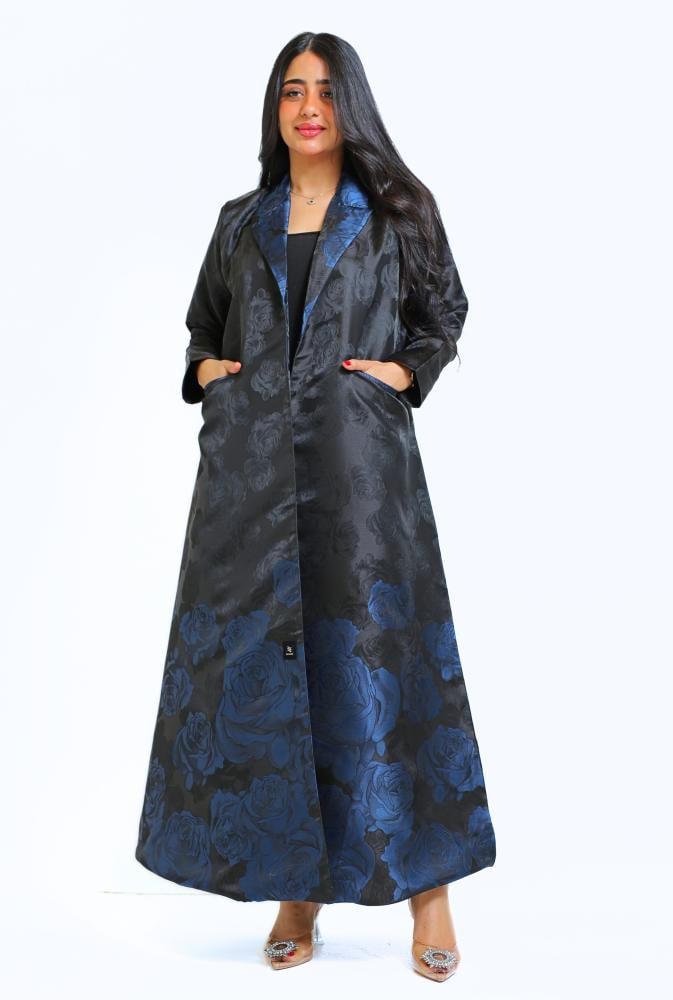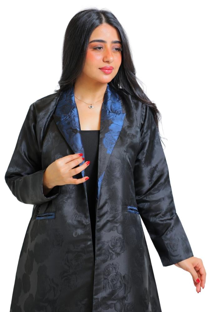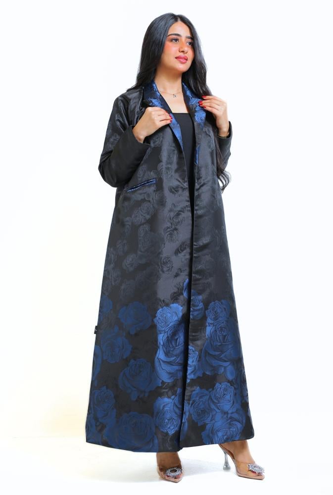 عباية لف ياقة جيوب قماش جاكر ناعم مشجر مبطن قماش الستان بلونين اسود وكحلي