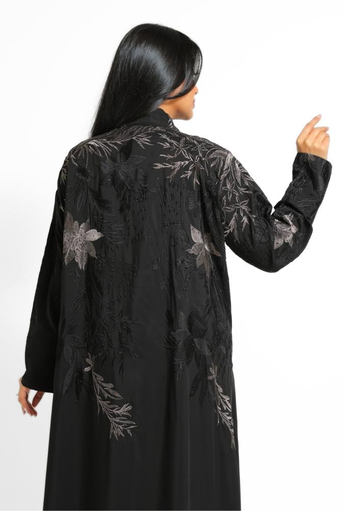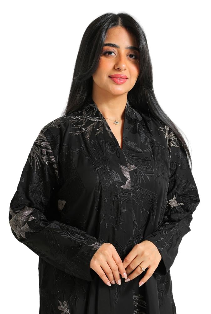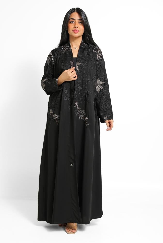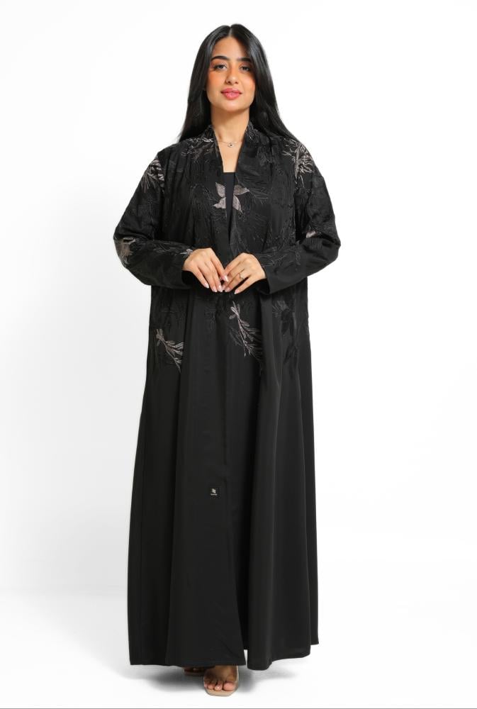 عباية لف مطرزة من الامام والخلف تطريز اسود ونحاسي