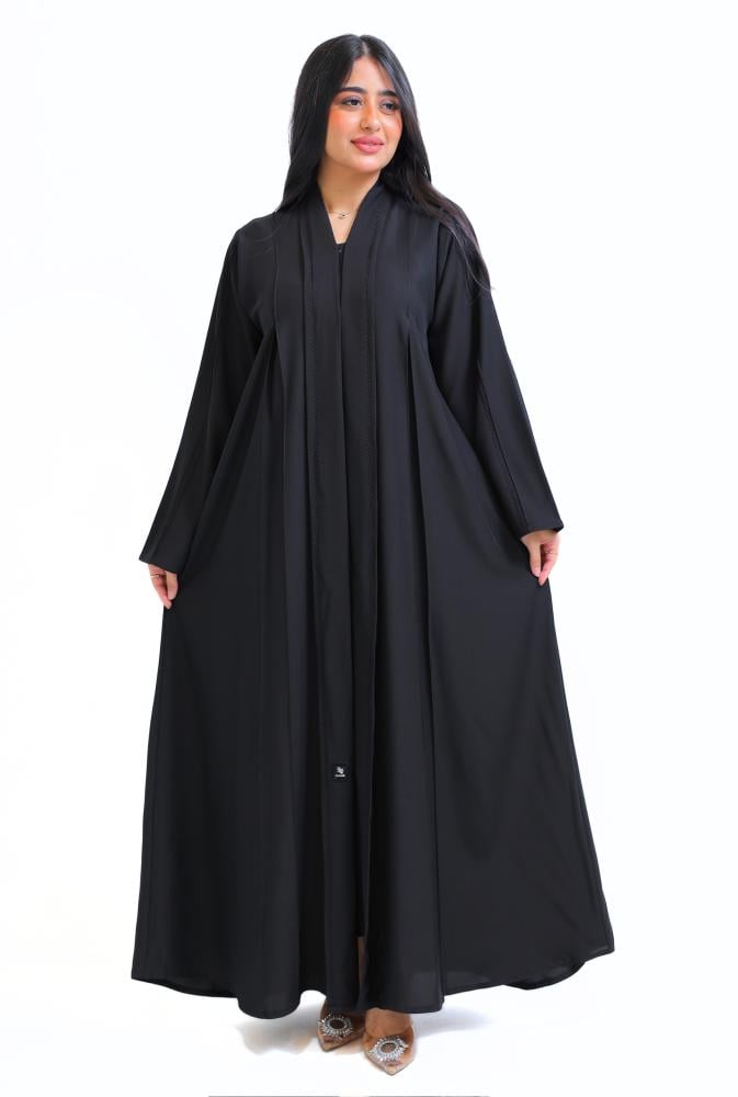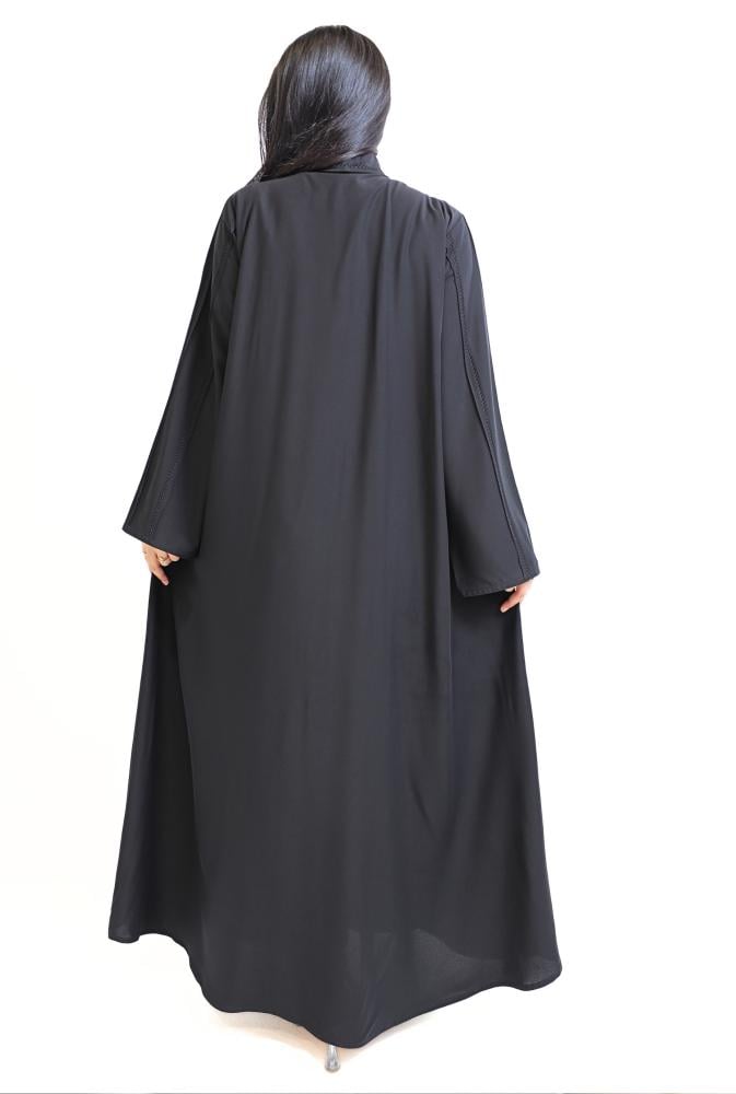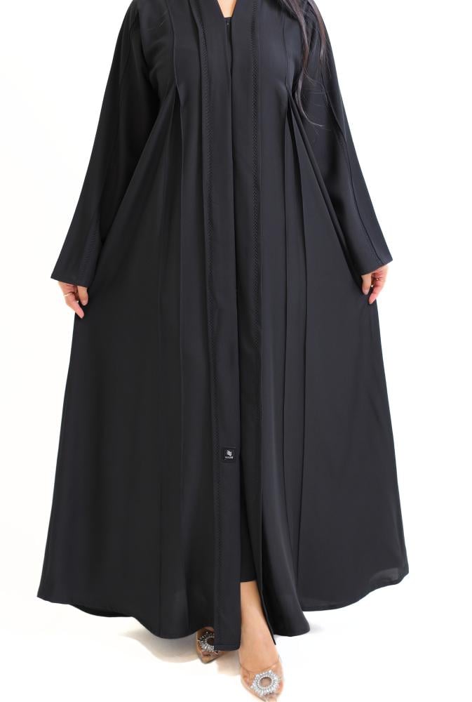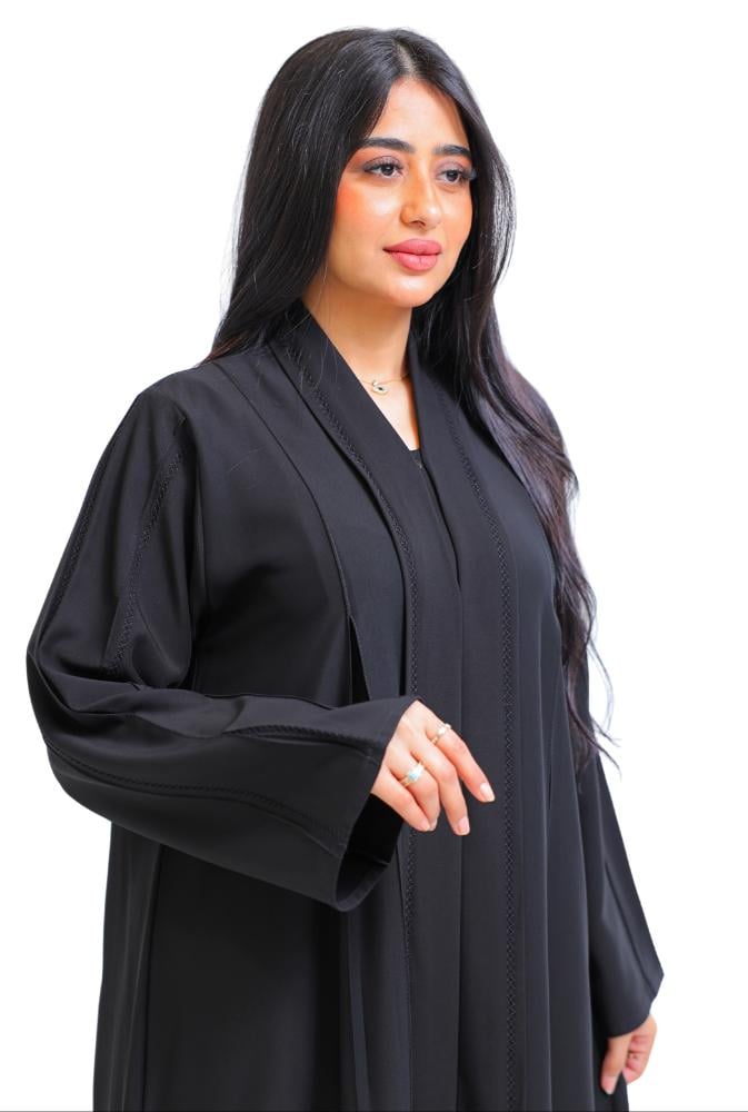 عباية بأزرار مطرزه بخطوط من الامام وطول الكم