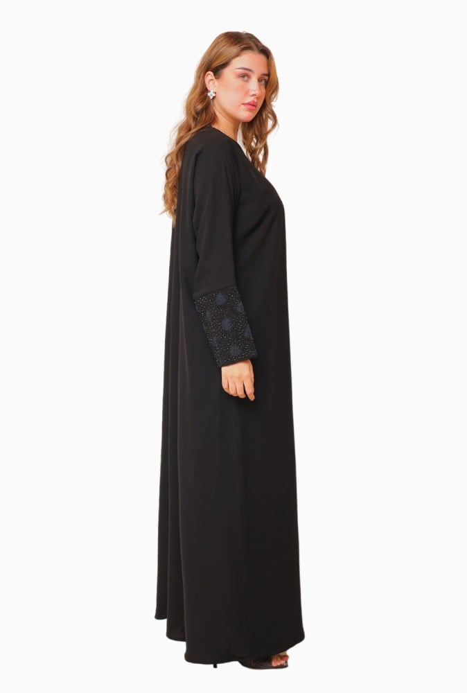 عباية بكبك مطرز بخرز اسود وخيط دروزي انيق بلون كحلي غامق متماسك بشكل جديد