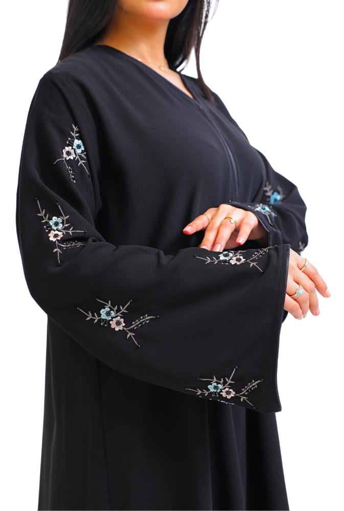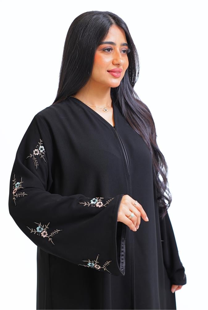 عباية بأزرار من لأمام مطرزة في طول الكمام شغل يدوي ملون