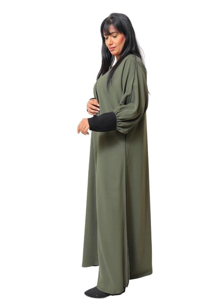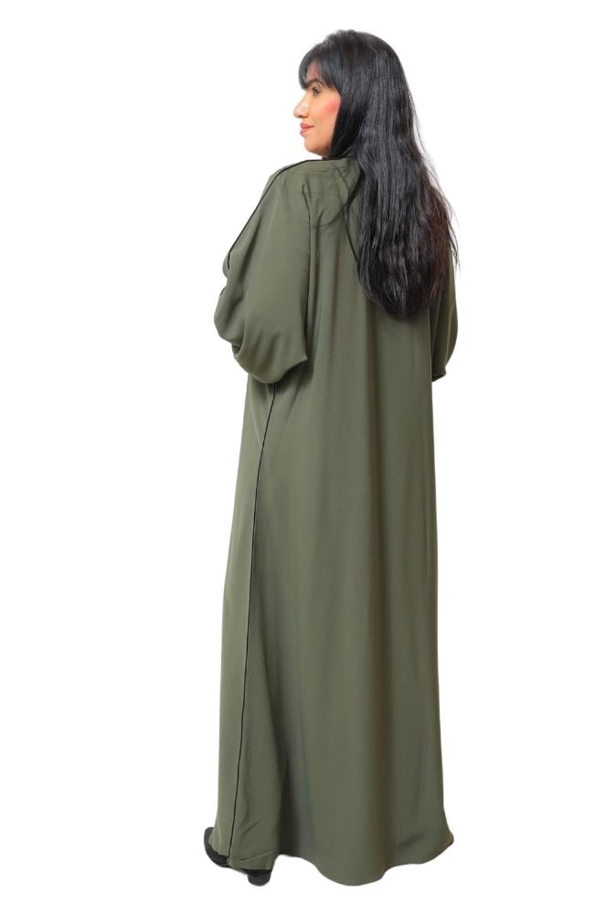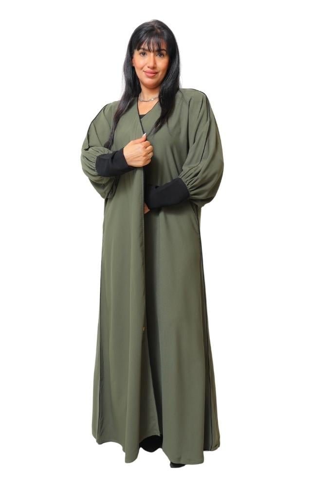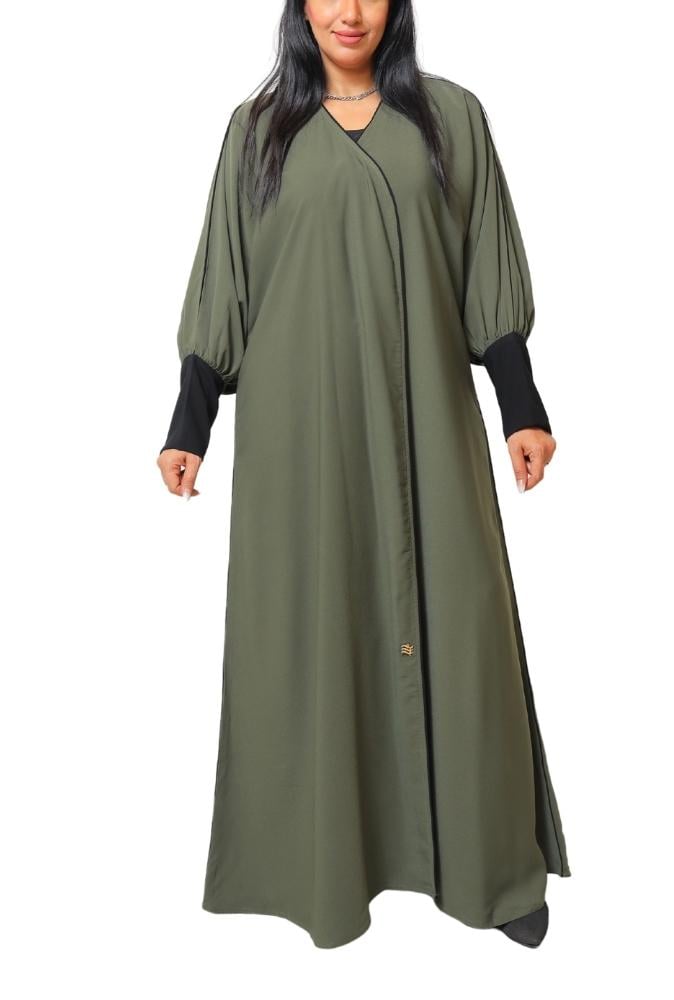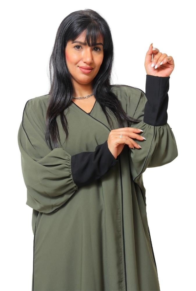 عباية بطرحة لف طرحة و محدد من أمام بكم كتان اسود