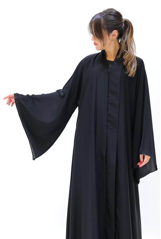 "عباية نص كلوش بأزرار بتصميم فاخر وكم واسع لإطلالة أنيقة وعصرية"