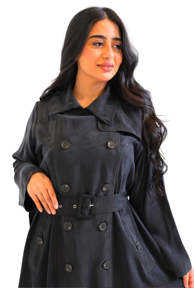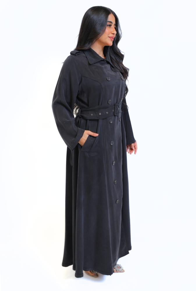 عباية ياقة بجيوب مميزة بازارا مدور من الامام بربطة في الخصر