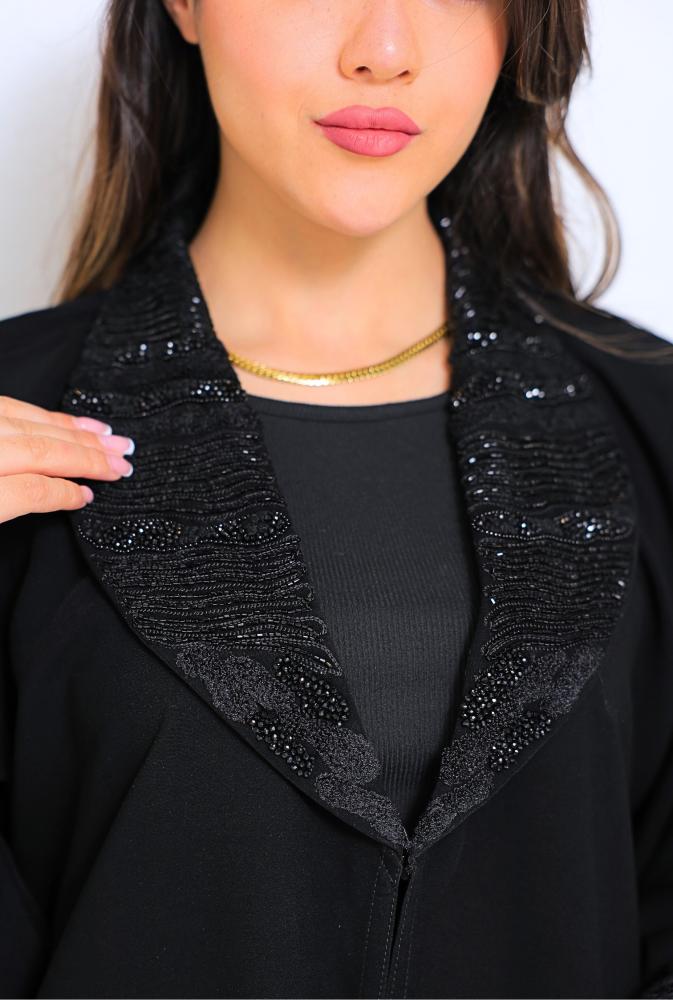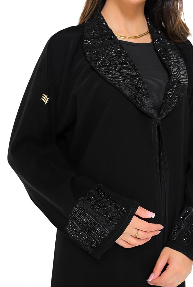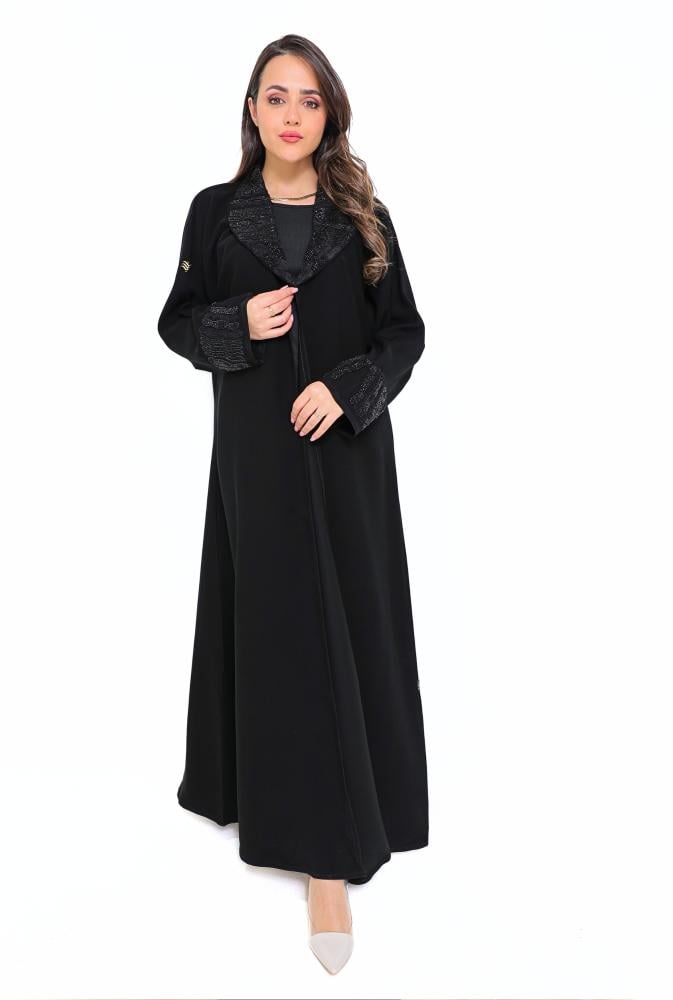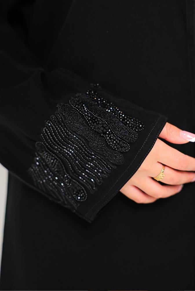 عباية مطرزة لف شغل يدوي في الكم والياقة اسود