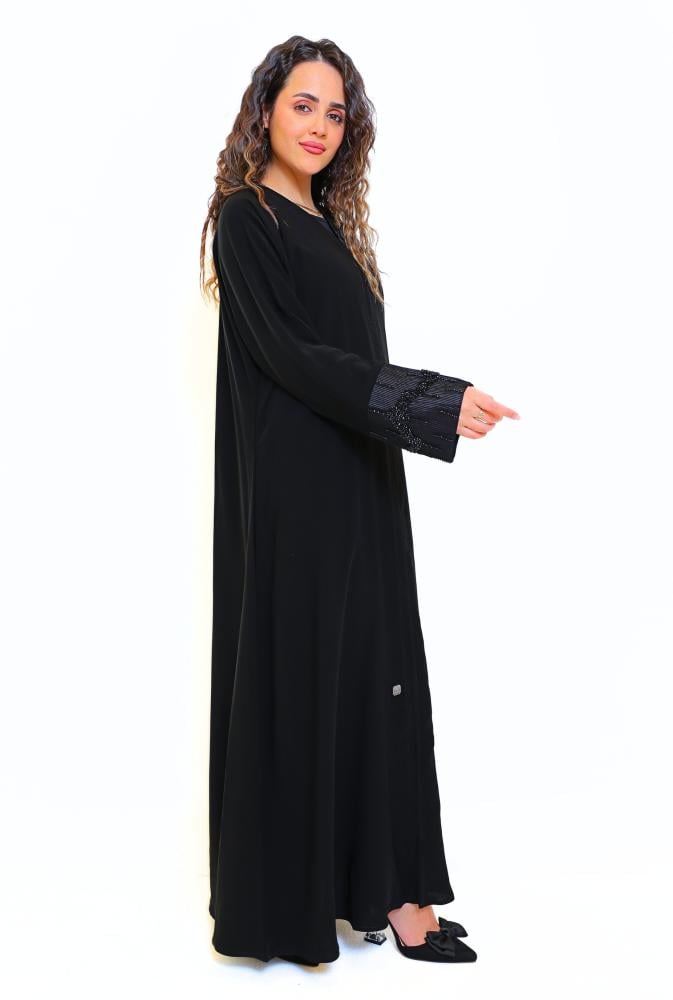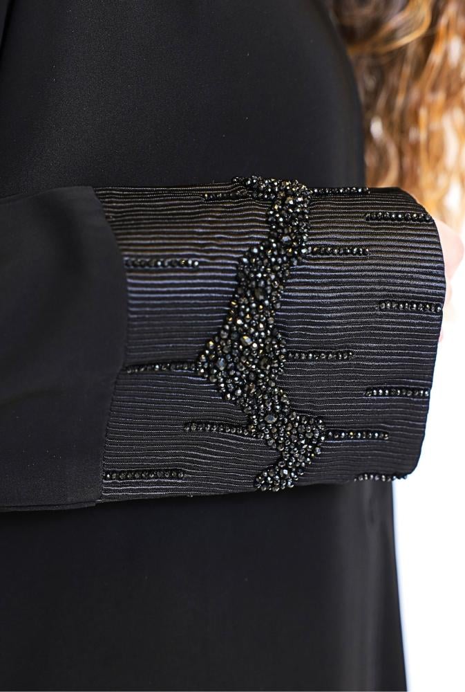 عباية بازارا من الامام بشغل يدوي خرز الأسود مع تطريز خطوط في الكم
