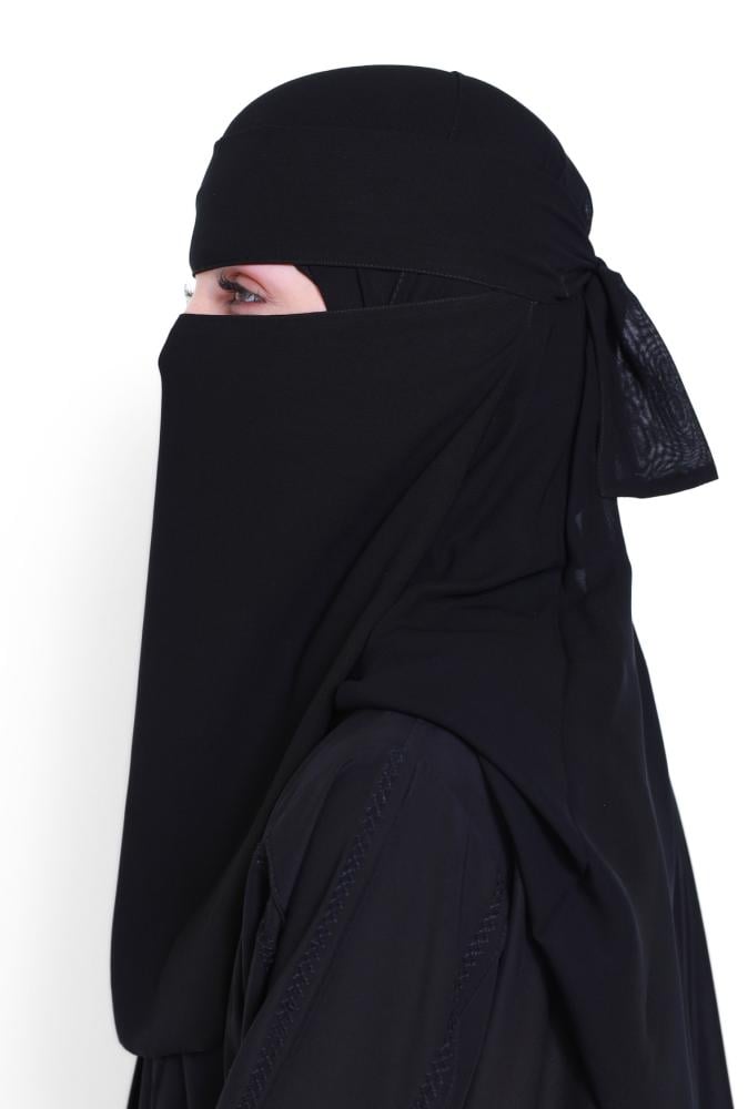 نقاب قصير مطاط بدون مقوى نوع النقاب : بدون مقوى فتحة النقاب : مطاط طول النقاب : قصير نوع القماش : ليزر ناعمالقفلة : ربطة عريض اللون : اسود