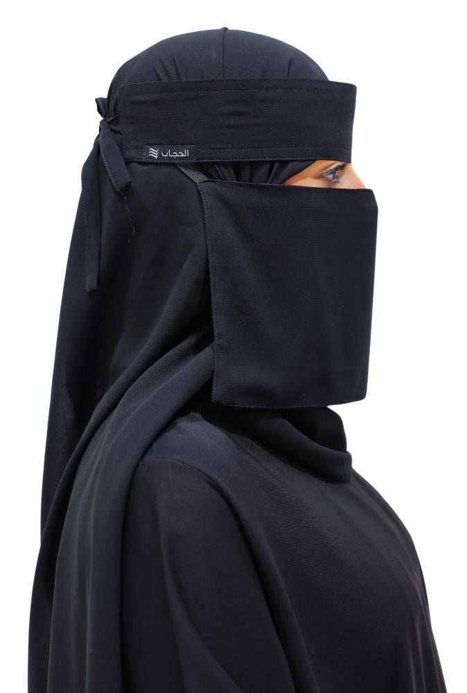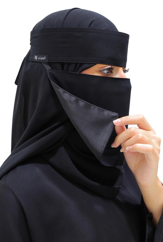 نقاب قصير بمغاط مايل بطانة ستن